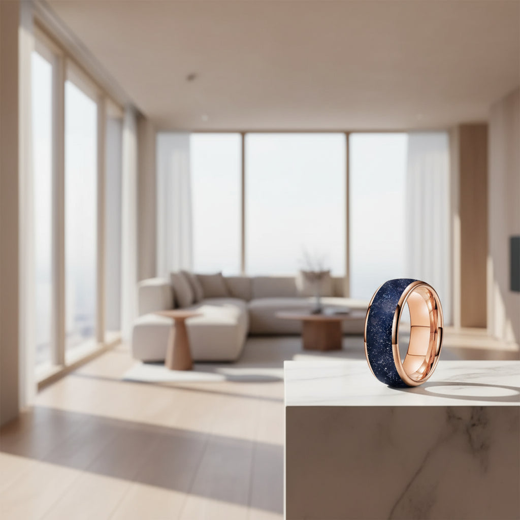 Forged from premium tungsten carbide, this ring represents endurance and balance — the perfect harmony between elegance and strength. The smooth comfort fit ensures effortless wear, while the blue sandstone inlay adds a celestial touch that catches the light from every angle. Whether for a wedding, anniversary, or personal milestone, it symbolizes eternal devotion and cosmic unity.