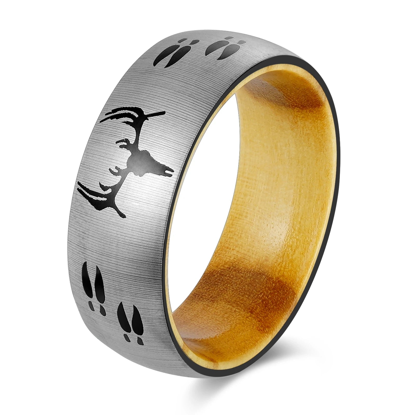 Discover the perfect combination of nature and craftsmanship with this 8mm Stainless Steel Ring featuring an Olive Wood Liner and Silver Deer Laser Engraving. Designed for men, this ring is more than jewelry—it's a statement of style, durability, and individuality.