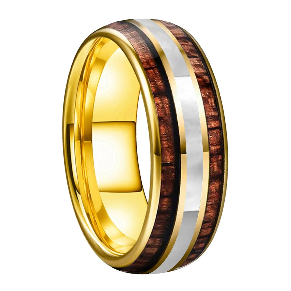 Crafted from premium tungsten carbide, this 8mm tungsten wedding band with Hawaiian Koa wood and mother of pearl inlay offers exceptional scratch resistance, corrosion protection, and long-term durability. The contrast between organic texture and luminous shell creates a distinctive unisex tungsten wedding ring designed for everyday wear and lasting resilience.